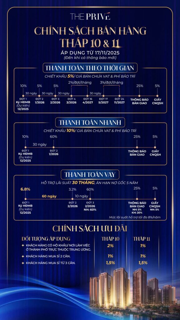 Căn hộ 1 phòng ngủ The Prive là lựa chọn cân bằng giữa khả năng tài chính, trải nghiệm sống và tiềm năng đầu tư. Với thiết kế thông minh, số lượng giới hạn và vị trí ven sông chiến lược, sản phẩm này không chỉ phù hợp để an cư mà còn là kênh tích sản đáng cân nhắc trong giai đoạn thị trường đang bước vào chu kỳ tăng trưởng mới.