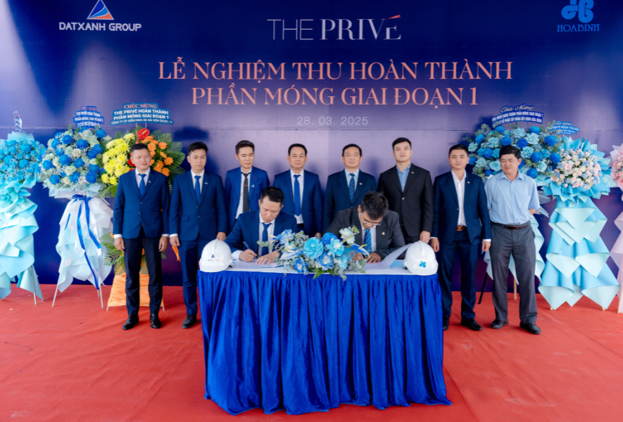 Đại diện Chủ đầu tư Đất Xanh và nhà thầu Hoà Bình kí nghiệm thu