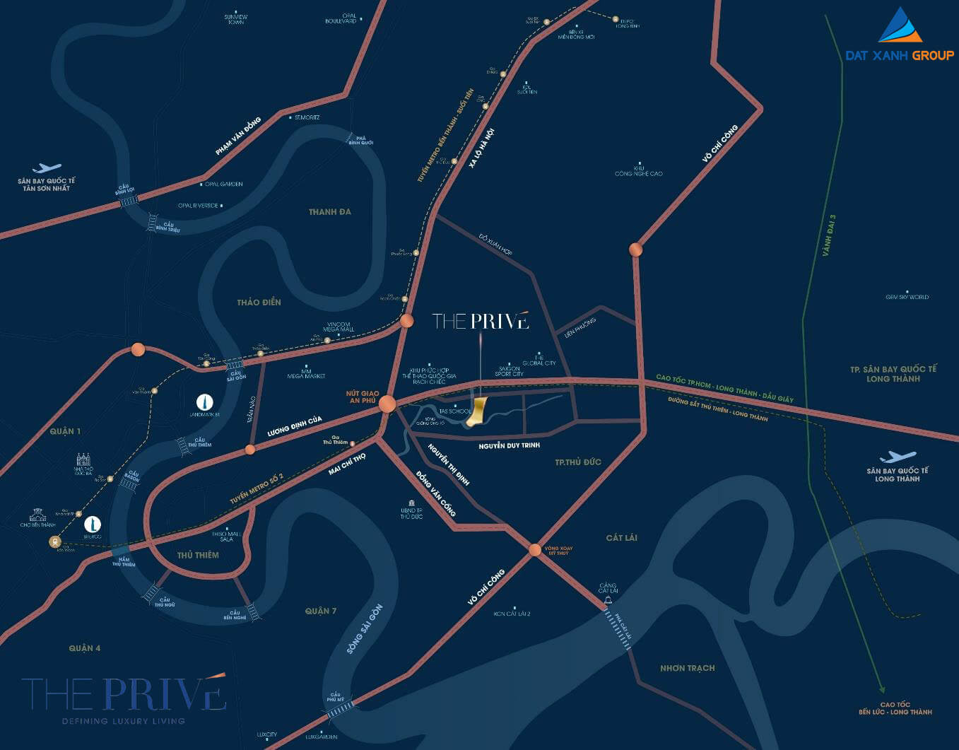 The Privé nằm ngay trung tâm khu vực phát triển năng động phía Nam Sài Gòn. Từ đây, cư dân và nhà đầu tư dễ dàng kết nối với: